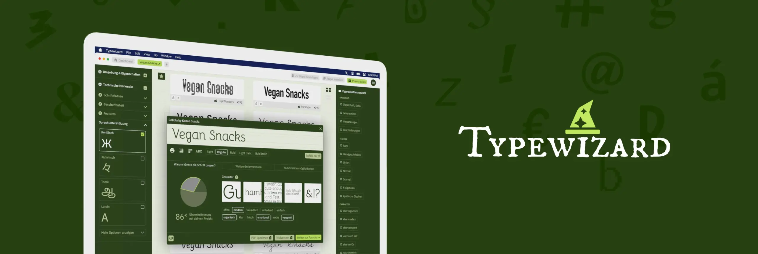 Wir suchen stets passende Schriften für gestalterische Projekte. Doch wie finden wir sie im unendlichen Angebot der Schriftarten? Typewizard fungiert an dieser Stelle als digitaler Assistent. Mit interaktiven Filtern, Bewertungen und einer nutzerzentrierten Oberfläche unterstützt das Tool gestaltende Personen dabei, das ideale Exemplar für ihre Projekte zu finden und im Schriftenmeer frei zu navigieren.